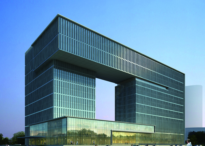 東景五星級酒店及辦公樓項目位于貴陽市觀山湖區(qū),基地東鄰貴陽市行政中心,北鄰鋁鎂設(shè)計院,南鄰貴州移動指揮調(diào)度中心,西向陽森房產(chǎn),地塊基本呈矩形,項目總用地面積24966平方米,總建筑面積99284平方米,其中地下建筑面積41915平方米。地上建筑面積共57369平方米,地下部分共計4層,為停車庫及酒店配套用房。地上部分由一棟結(jié)構(gòu)總高64.4m的14層辦公樓和一棟結(jié)構(gòu)總高68.8m的16層酒店組成,兩棟塔樓平面呈L型布置,結(jié)構(gòu)形式均為現(xiàn)澆框架剪力墻結(jié)構(gòu),辦公樓頂部采用鋼結(jié)構(gòu)向外懸挑兩層,懸挑跨度為11.1m。辦公樓和酒店在頂部通過跨度為30m鋼結(jié)構(gòu)連接體相連,連接體在辦公樓側(cè)與混凝土柱鉸接相連,在酒店一側(cè)用滑移支座相連,滑移支座接罕遇地震下兩座單體最不利彈性位移進行設(shè)計,保證兩個單體在罕遇地震下不致相撞或脫開。