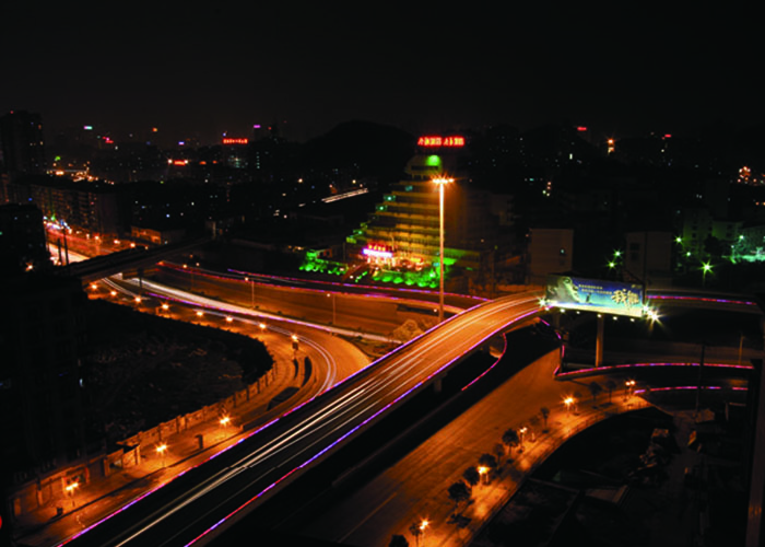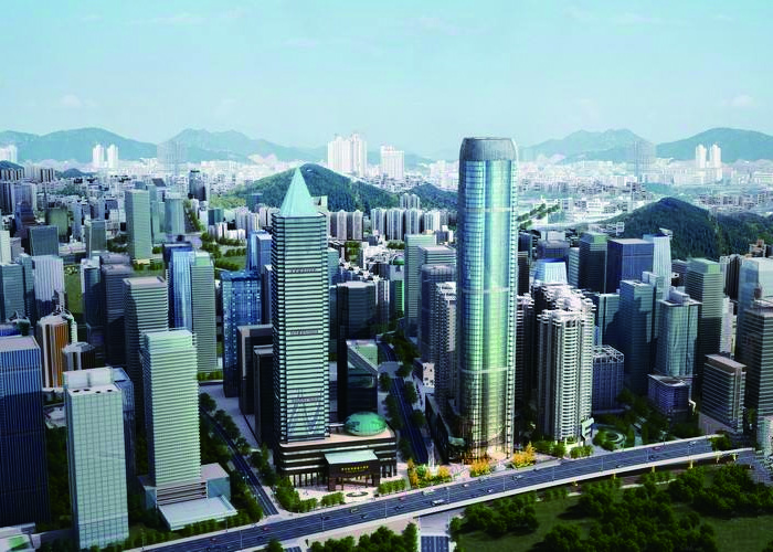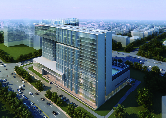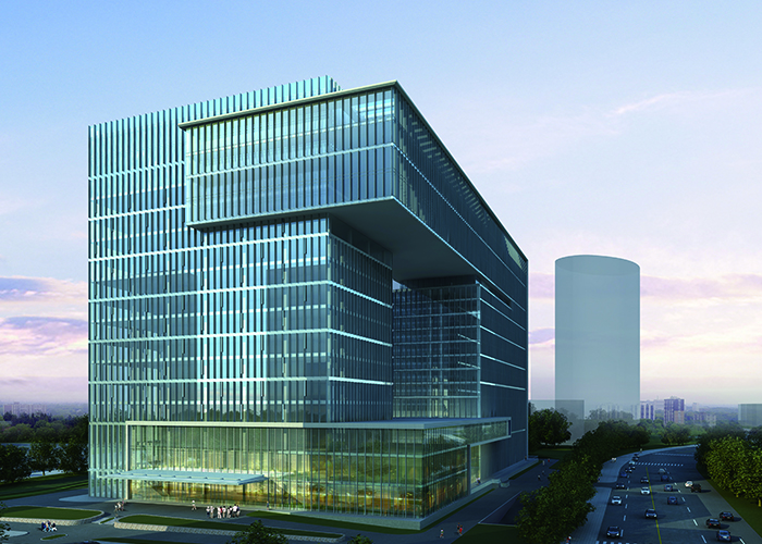 東景五星級酒店及辦公樓項(xiàng)目位于貴陽市觀山湖區(qū),基地東鄰貴陽市行政中心,北鄰鋁鎂設(shè)計(jì)院,南鄰貴州移動指揮調(diào)度中心,西向陽森房產(chǎn),地塊基本呈矩形,項(xiàng)目總用地面積24966平方米,總建筑面積99284平方米,其中地下建筑面積41915平方米。地上建筑面積共57369平方米,地下部分共計(jì)4層,為停車庫及酒店配套用房。地上部分由一棟結(jié)構(gòu)總高64.4m的14層辦公樓和一棟結(jié)構(gòu)總高68.8m的16層酒店組成,兩棟塔樓平面呈L型布置,結(jié)構(gòu)形式均為現(xiàn)澆框架剪力墻結(jié)構(gòu),辦公樓頂部采用鋼結(jié)構(gòu)向外懸挑兩層,懸挑跨度為11.1m。辦公樓和酒店在頂部通過跨度為30m鋼結(jié)構(gòu)連接體相連,連接體在辦公樓側(cè)與混凝土柱鉸接相連,在酒店一側(cè)用滑移支座相連,滑移支座接罕遇地震下兩座單體最不利彈性位移進(jìn)行設(shè)計(jì),保證兩個單體在罕遇地震下不致相撞或脫開。