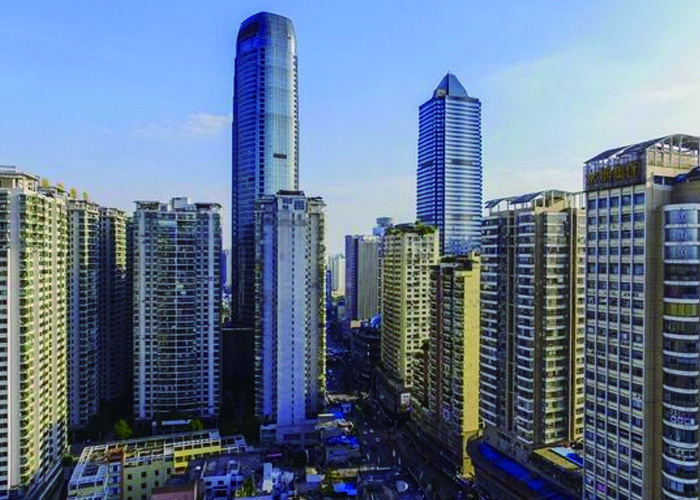 貴陽市凱賓斯基大酒店位于貴陽市護(hù)國路與指月街交接處,建設(shè)用地5740平方米,由塔樓、裙樓、地下室組成。其中塔樓為53層超高層建筑,總建筑面積約7.8萬平方米,設(shè)三層地下室,地下室埋深12.6M,塔樓與裙樓在地下室部分連接,本工程設(shè)有六層裙房、三層地下室,使用功能為設(shè)備用房、車庫、辦公、商場、餐飲娛樂;7層~26層為寫字間,28層~53層為酒店;14層、27層、40層為避難層;層面標(biāo)高自地面以上為212.0M,根據(jù)貴陽地震設(shè)防烈度低、基礎(chǔ)持力層承載力大的特點(diǎn),采用鋼筋混凝土框筒結(jié)構(gòu),其中框架柱通過設(shè)置芯柱有效減小柱截面。