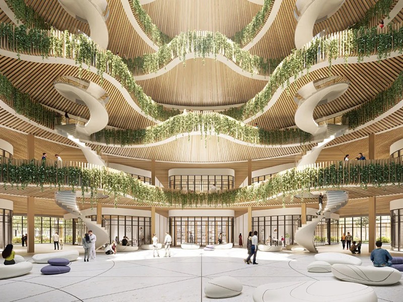 Vincent Callebaut 在比利時設(shè)計了一個生物親環(huán)境醫(yī)院園區(qū) HOSPIWOOD,旨在提高可持續(xù)性以及病人的就醫(yī)體驗和康復(fù)水平。該項目將當(dāng)?shù)氐尼t(yī)院網(wǎng)絡(luò)集中在一個 14 公頃的園區(qū)內(nèi),旨在優(yōu)先考慮可持續(xù)發(fā)展并提供高質(zhì)量的醫(yī)療服務(wù)。HOSPIWOOD 是連接 Buset 和 Longtain 兩地的紐帶,位于東部城市大道沿線,可容納城市景觀中的各種功能,為城市的整體活力做出貢獻(xiàn)。HOSPIWOOD 項目的核心是致力于環(huán)境責(zé)任和社區(qū)福祉。該項目的總體規(guī)劃提倡高效的資源管理,將太陽能停車場、雨水收集系統(tǒng)和綠地等功能融入其中,以減輕對環(huán)境的影響,改善當(dāng)?shù)氐纳鷳B(tài)系統(tǒng)。