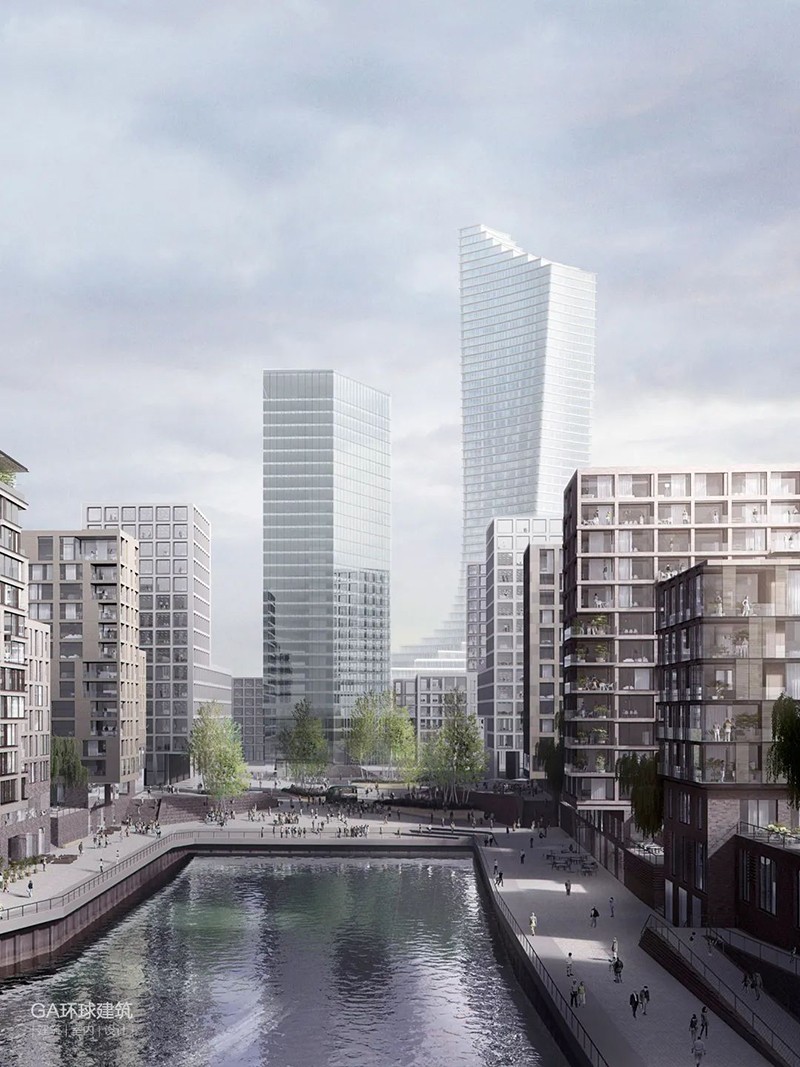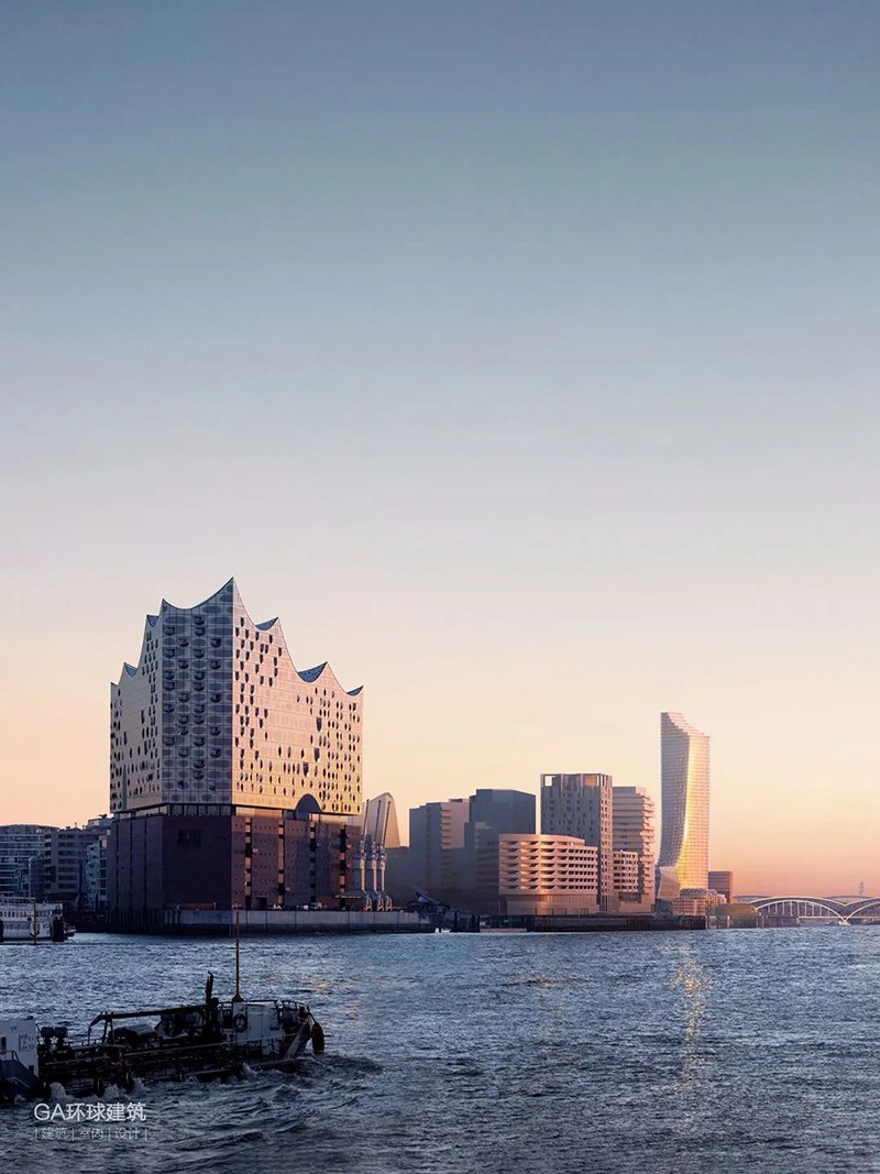 塔樓坐落于漢堡港城河畔,與易北愛(ài)樂(lè)廳遙相呼應(yīng),集辦公、零售、酒店及公共空間于一體。