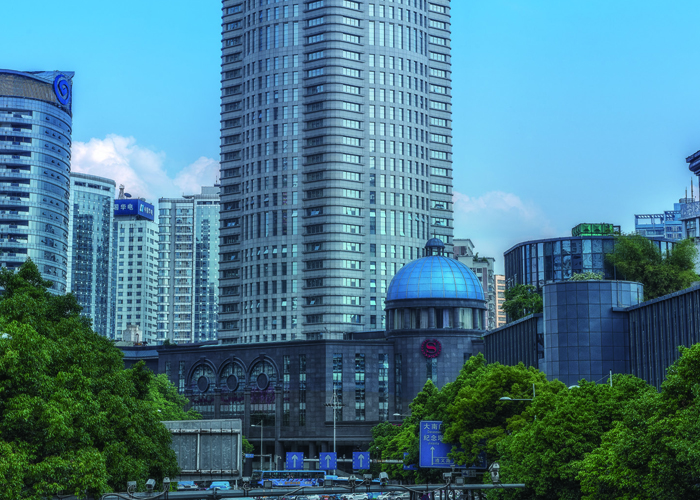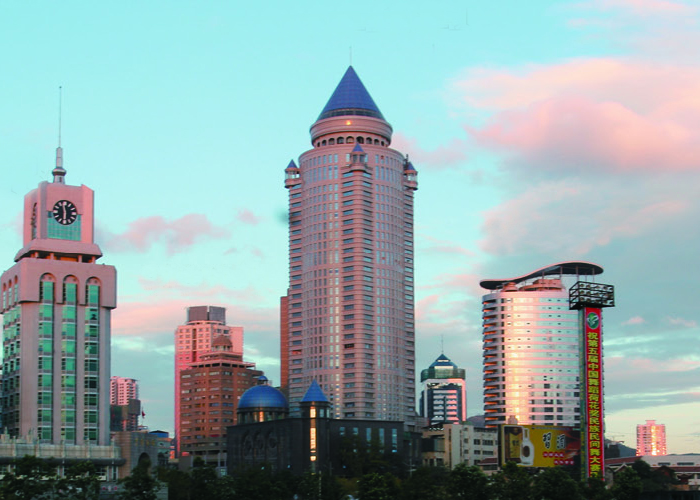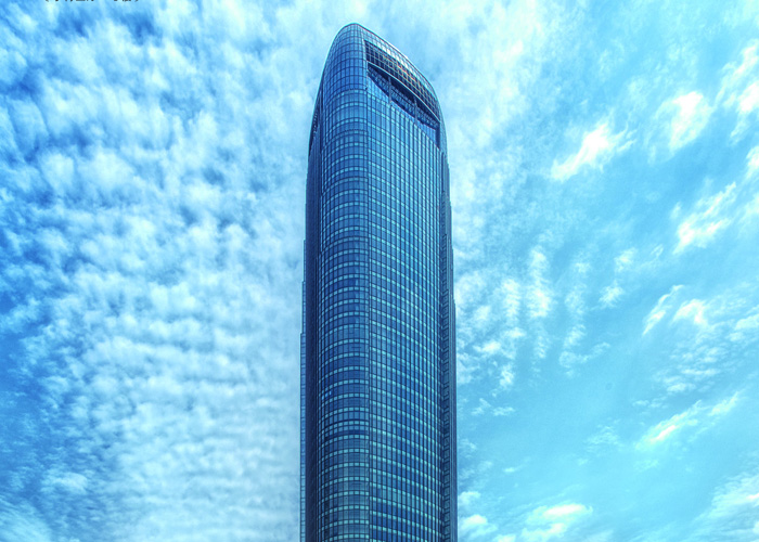 貴陽市凱賓斯基大酒店位于貴陽市護(hù)國路與指月街交接處,建設(shè)用地5740平方米,由塔樓、裙樓、地下室組成。其中塔樓為53層超高層建筑,總建筑面積約7.8萬平方米,設(shè)三層地下室,地下室埋深12.6M,塔樓與裙樓在地下室部分連接,本工程設(shè)有六層裙房、三層地下室,使用功能為設(shè)備用房、車庫、辦公、商場(chǎng)、餐飲娛樂;7層~26層為寫字間,28層~53層為酒店;14層、27層、40層為避難層;層面標(biāo)高自地面以上為212.0M,根據(jù)貴陽地震設(shè)防烈度低、基礎(chǔ)持力層承載力大的特點(diǎn),采用鋼筋混凝土框筒結(jié)構(gòu),其中框架柱通過設(shè)置芯柱有效減小柱截面。